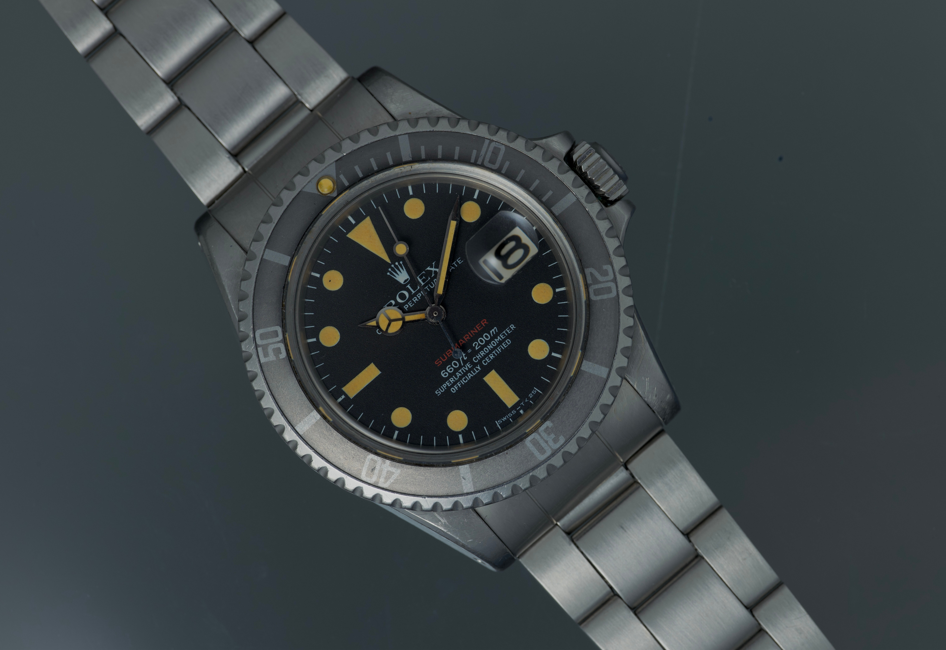 well the title says it all but lets dig deeper. Super nice red sub from 1972. The Dial and hands are perfect mk5 variant and have developed some of the nicest patina we have seen. The case has wear but original bevels are present and it is in untouched condition with fully visible numbers at 6 and 12. The bezel is sharp and the insert is a fabulous ghosted grey hue. The bracelet is the original 9315 with fully links plus diver extension. The movement was recently serviced and is running perfectly. Comes with generic rol.ex box.