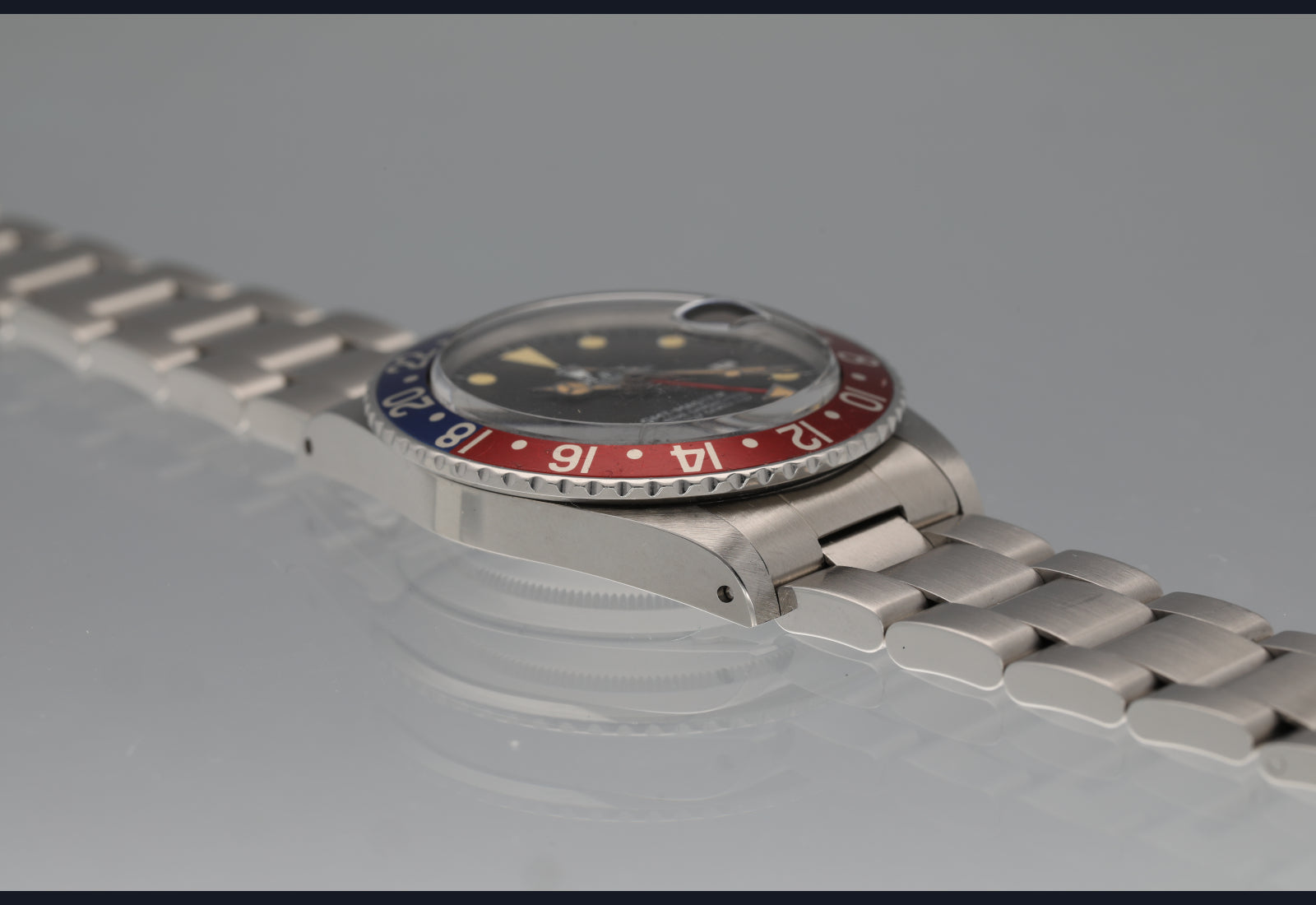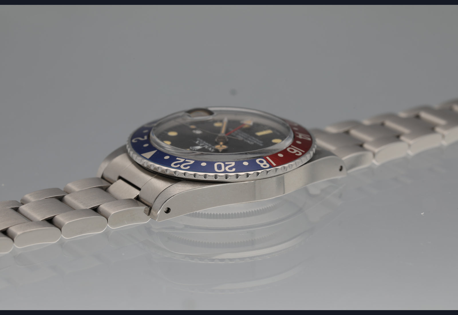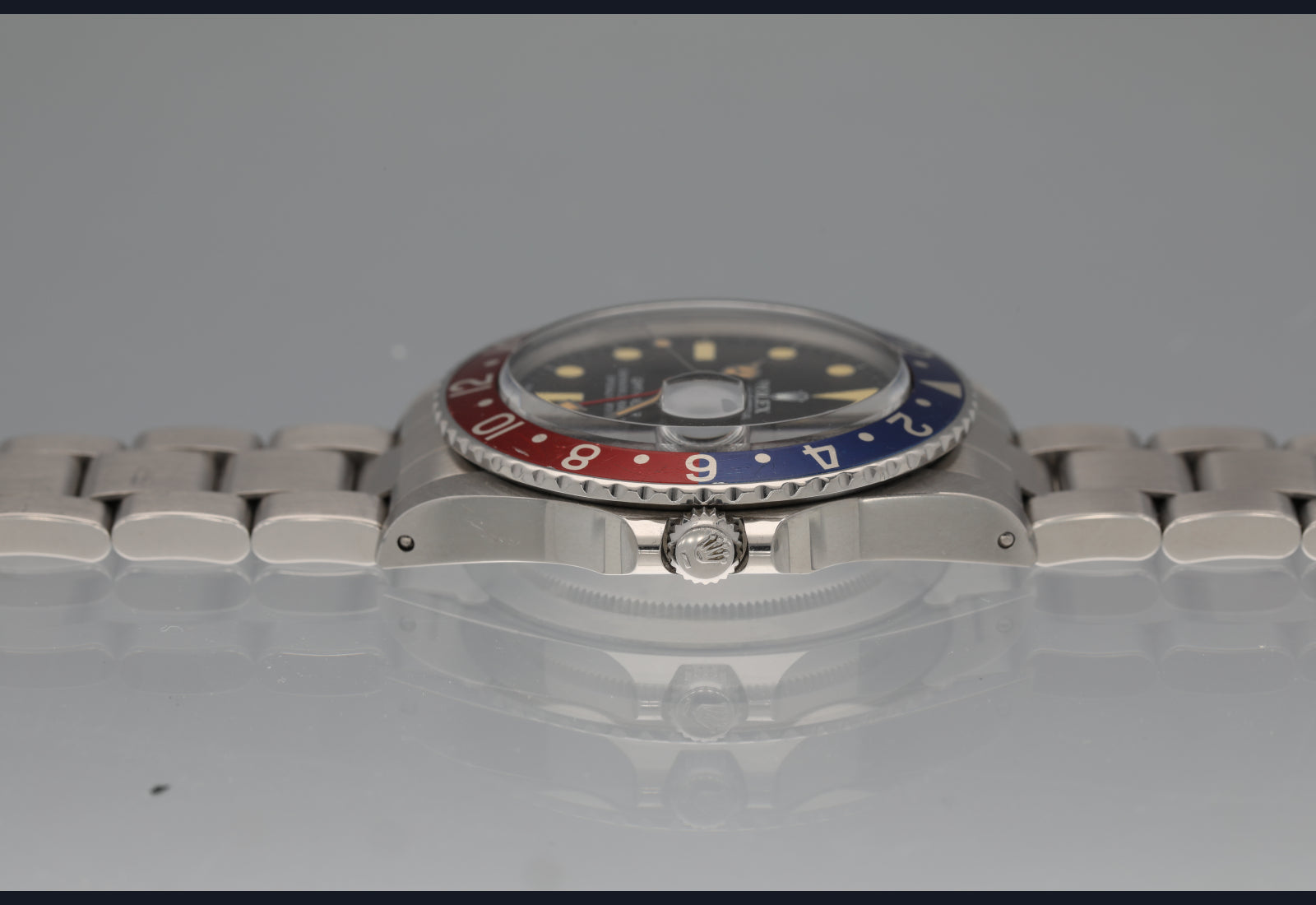 Superbly nice transitional 16750 from 1982. The dial and hands are perfect with deep patina. The case was recently detailed to factory specs and is super sharp with clear numbers. The bezel is sharp and the insert is original red back. The bracelet is a 78360/501 with 11 links and no stretch.. Comes complete with box papers and manuals. movement is being serviced.