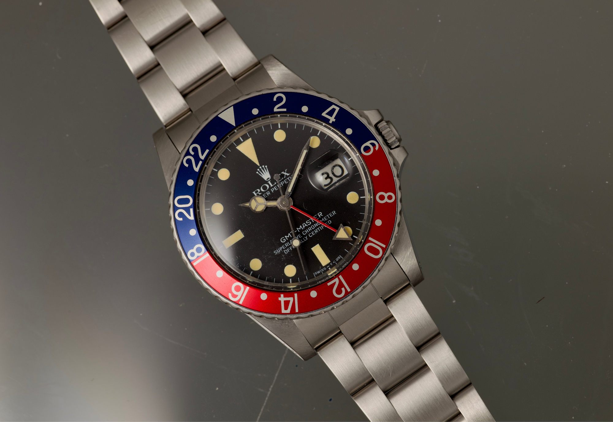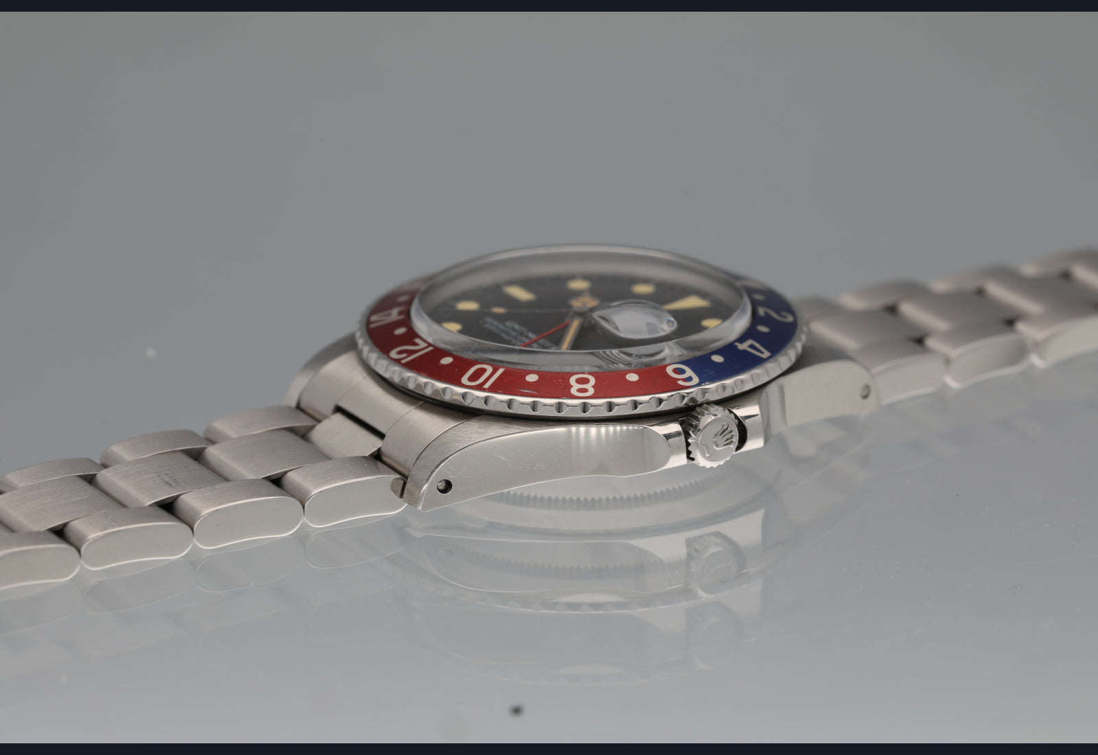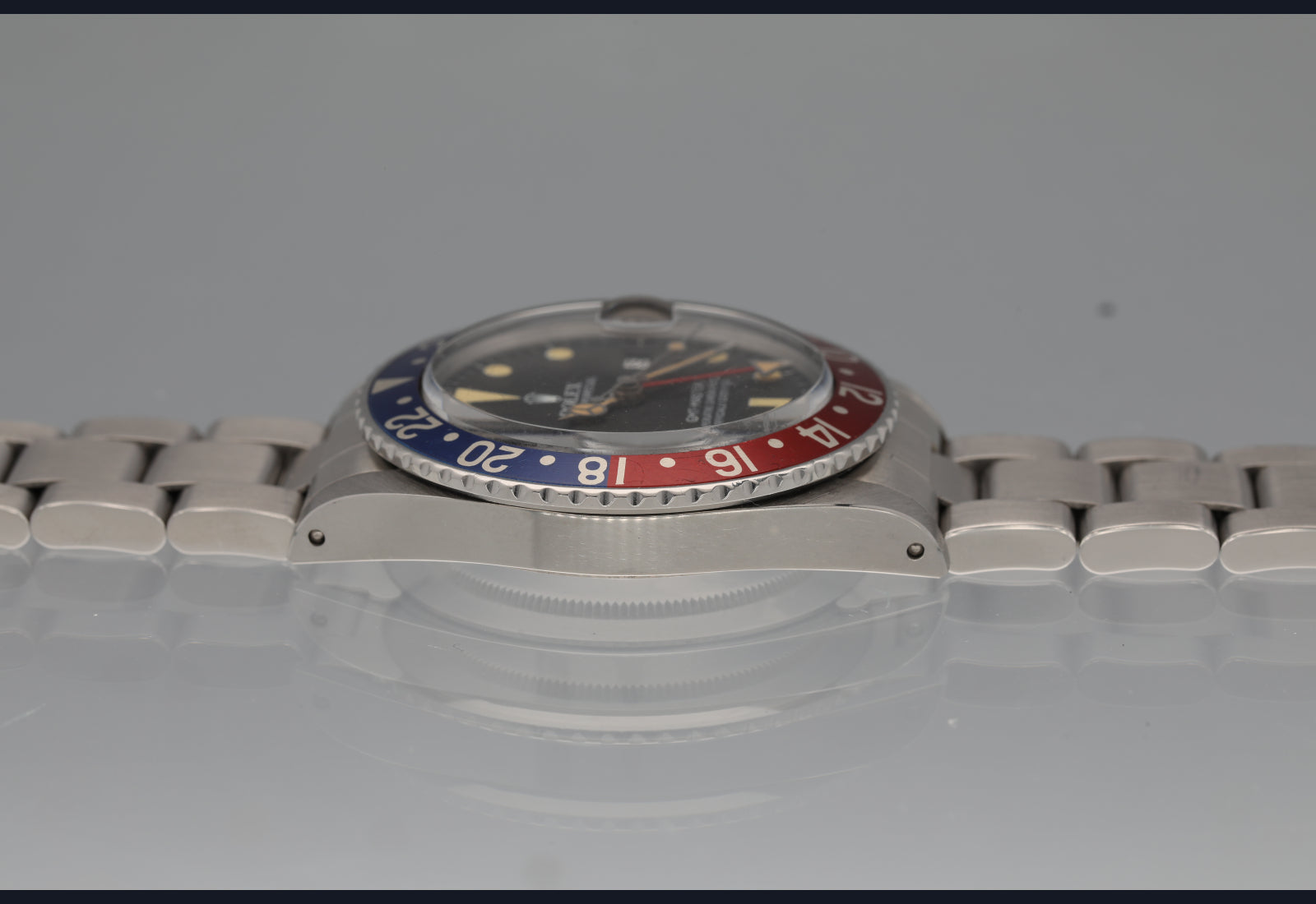 Superbly nice transitional 16750 from 1982. The dial and hands are perfect with deep patina. The case was recently detailed to factory specs and is super sharp with clear numbers. The bezel is sharp and the insert is original red back. The bracelet is a 78360/501 with 11 links and no stretch.. Comes complete with box papers and manuals. movement is being serviced.