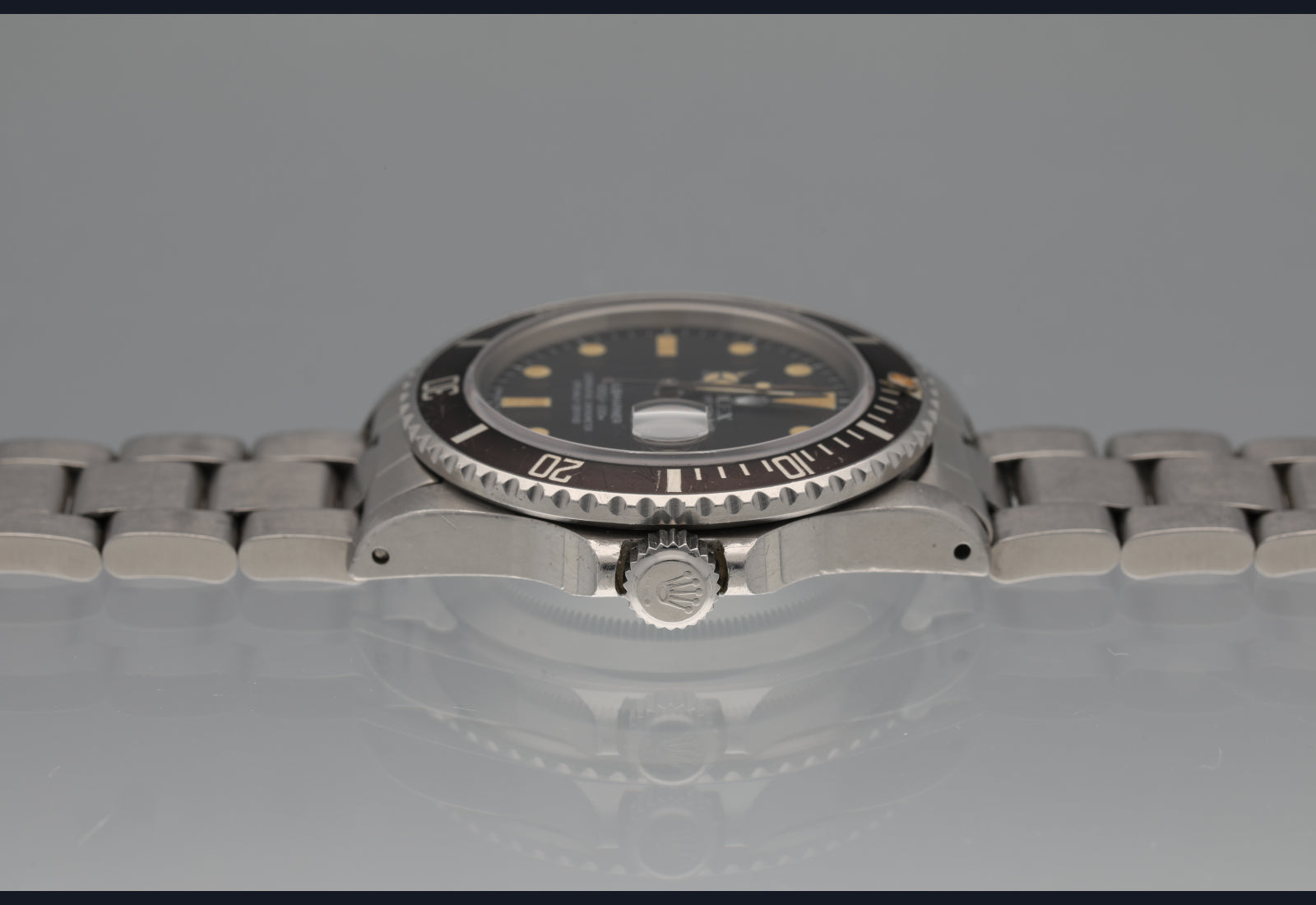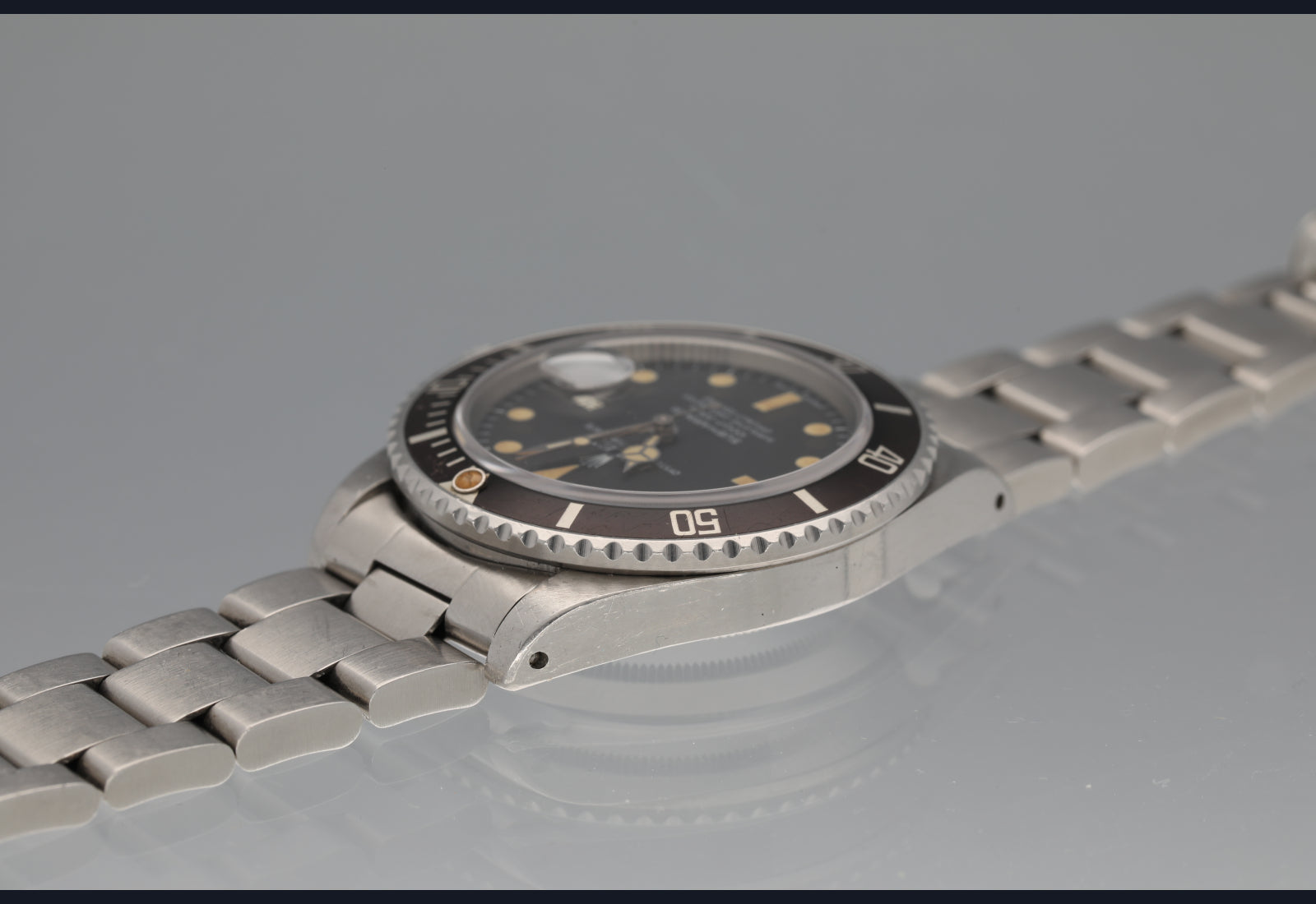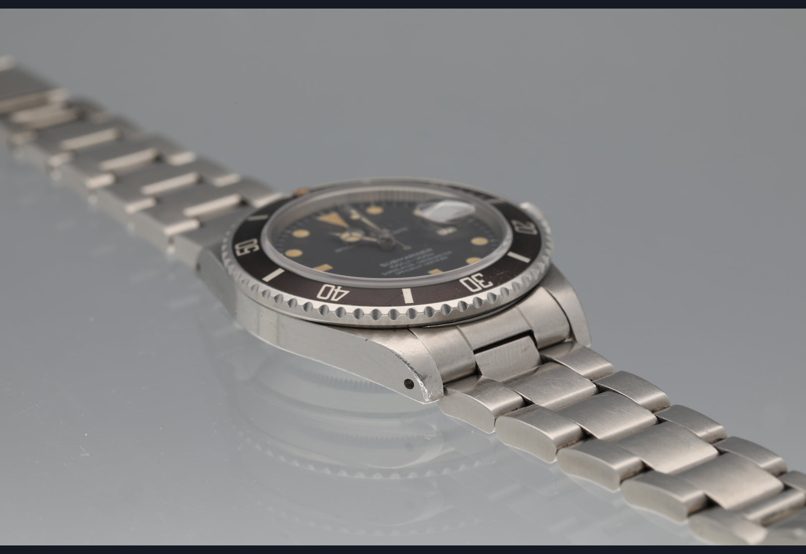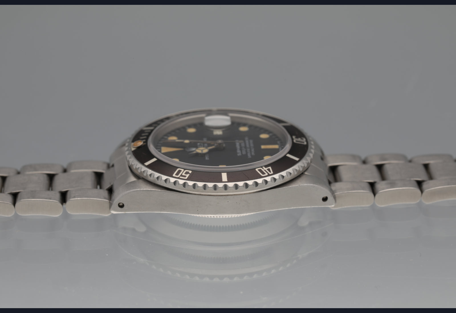 nice transitional 16800 from 1984. The dial and hands are clean and have developed a nice deep yellow patina. The case has some wear but is unpolished and thick. The bezel is sharp and the insert has faded to a deep chocolate brown. The bracelet is original with 11 links plus diver ext. The movement is running strong and keeping excellent time however las service unknown. Comes with box and oyster manual