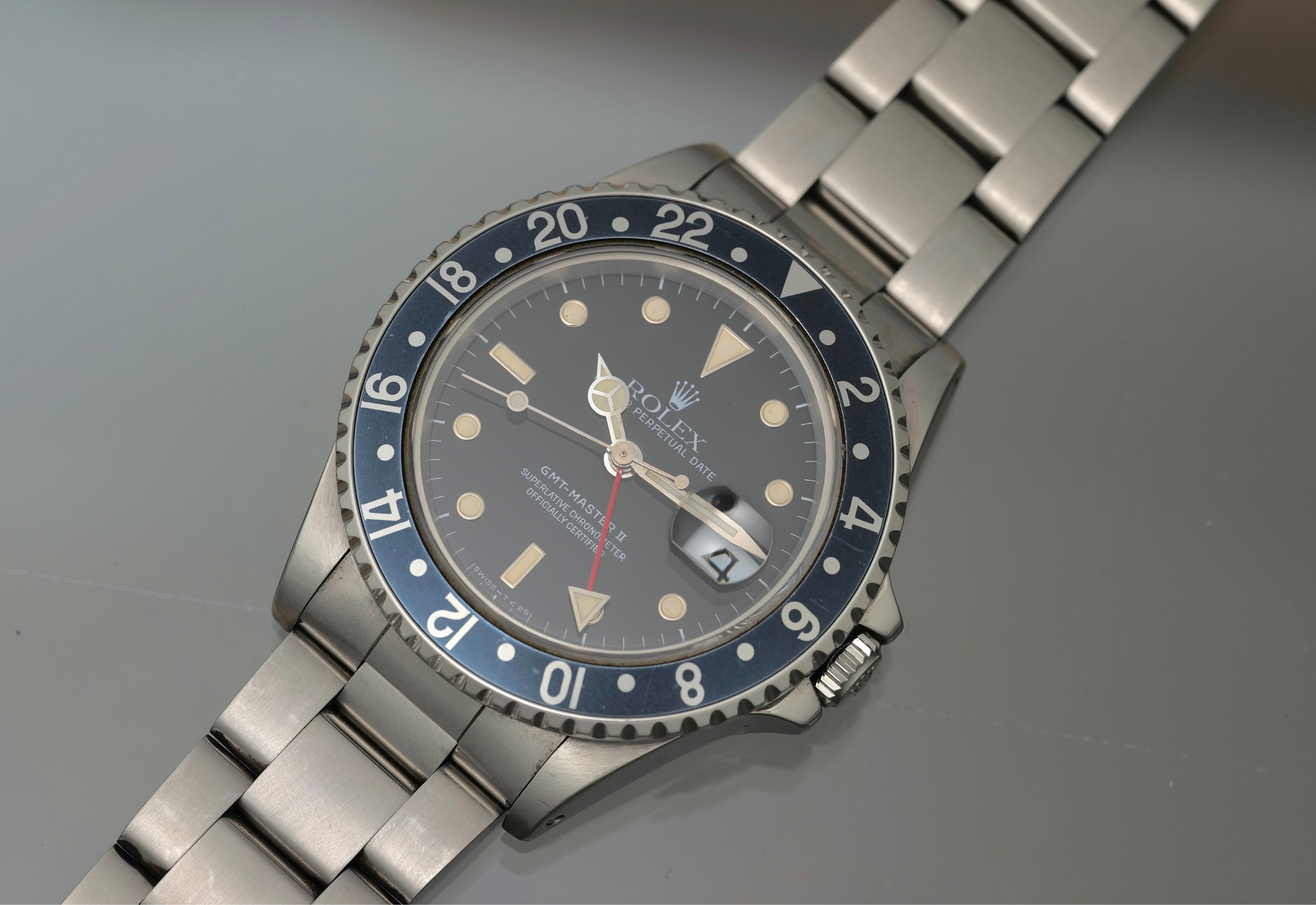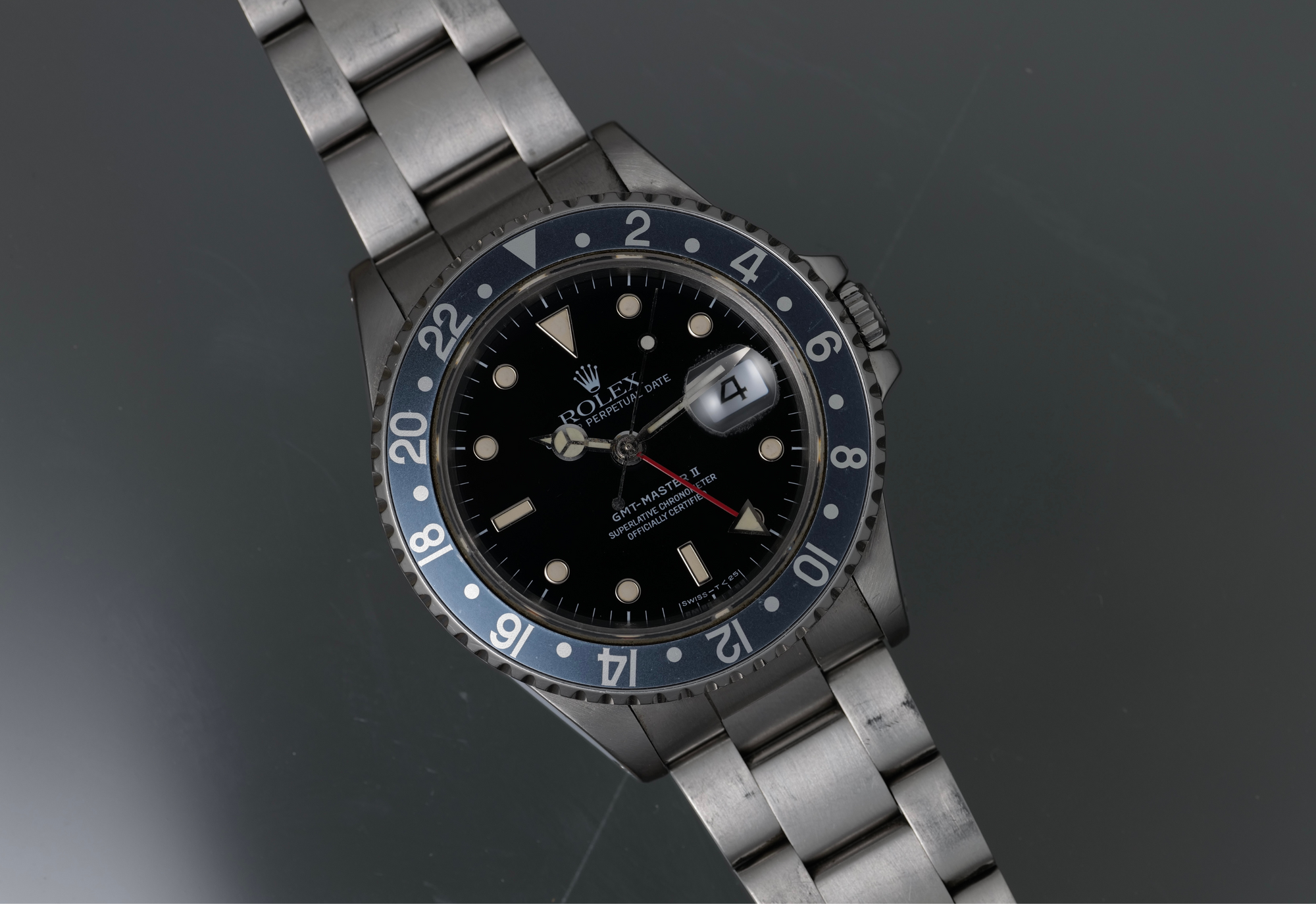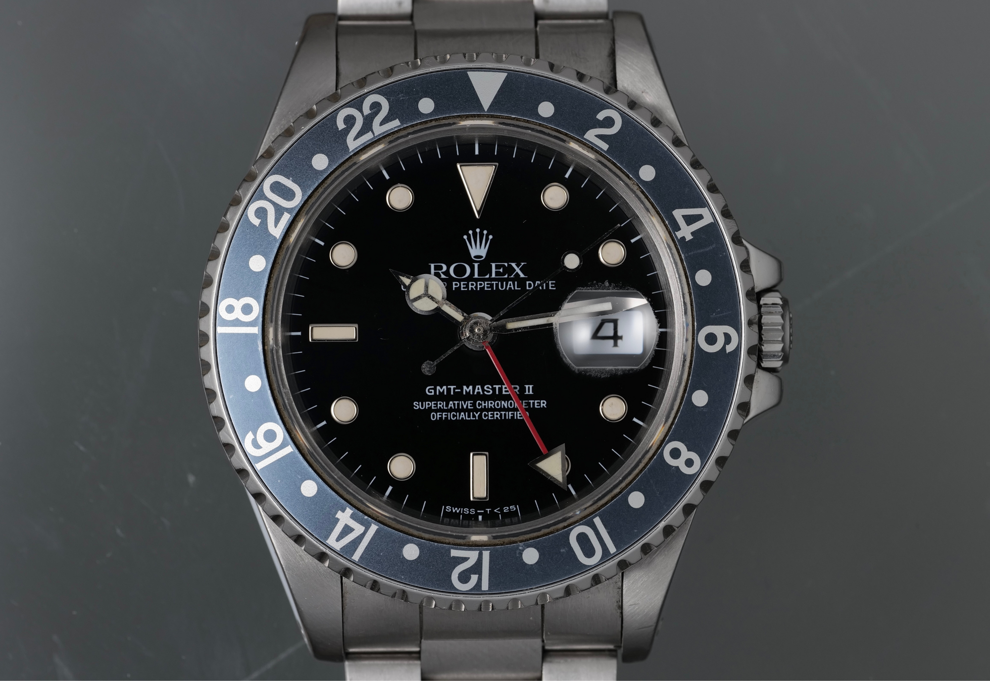well preserved 16710 GMT II from 1989. The dial and hands are perfect with nice cream patina on the tritium lume. The case was polished in the past however remains thick and even. The bezel is sharp and the insert is a nice grey fade. The bracelet is original with very little stretch and 11 links. The movement is running well and keeping excellent time. Last service is unknown. The watch comes with original box and manual.