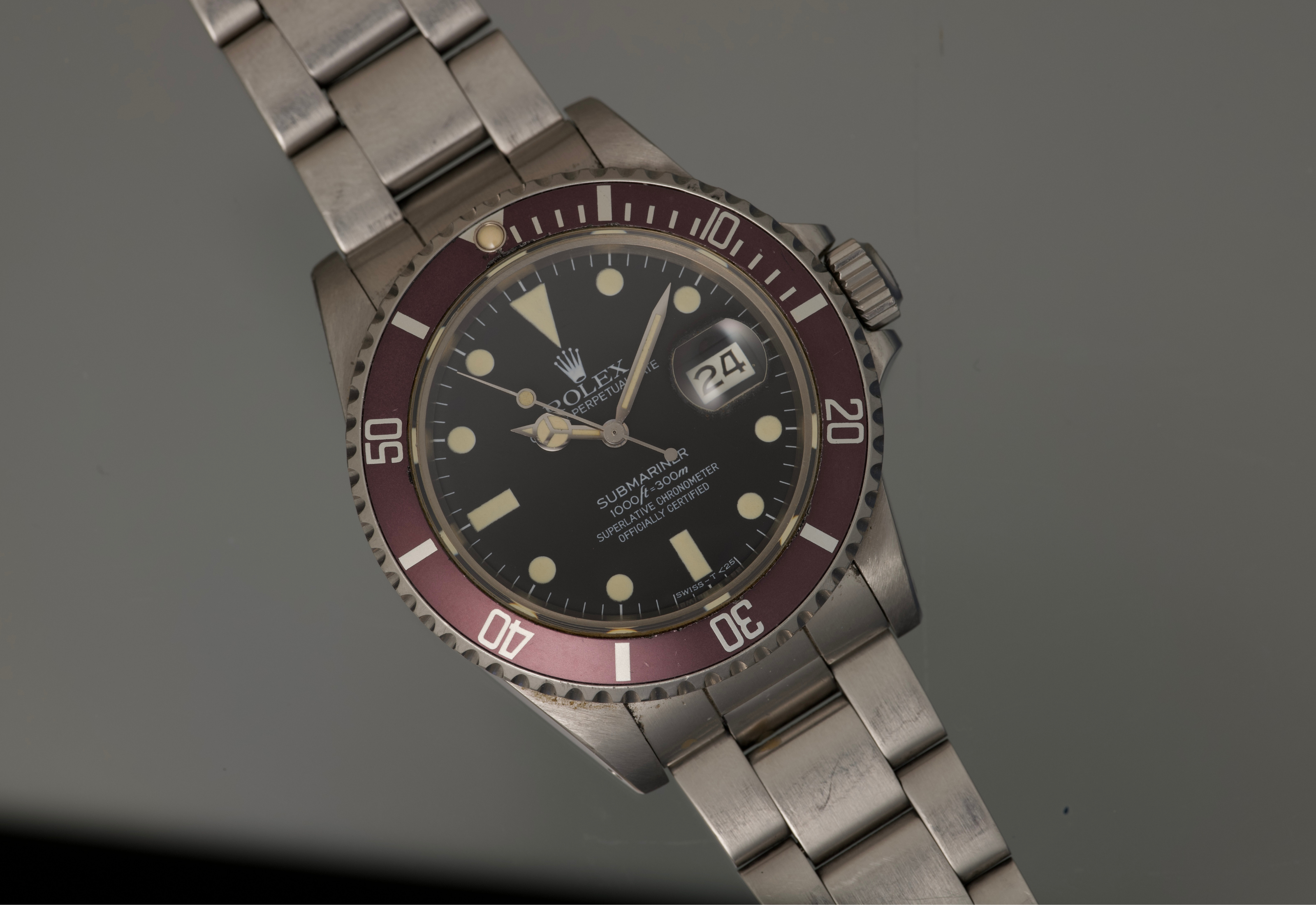 one owner watch 16800 from 1984. The dial and hands are perfect, the case is unpolished and retains partial caseback sticker, the bezel is a beautiful maroon color. The bracelet is tight and fully linked. The movement is running as it should. Comes with original box.