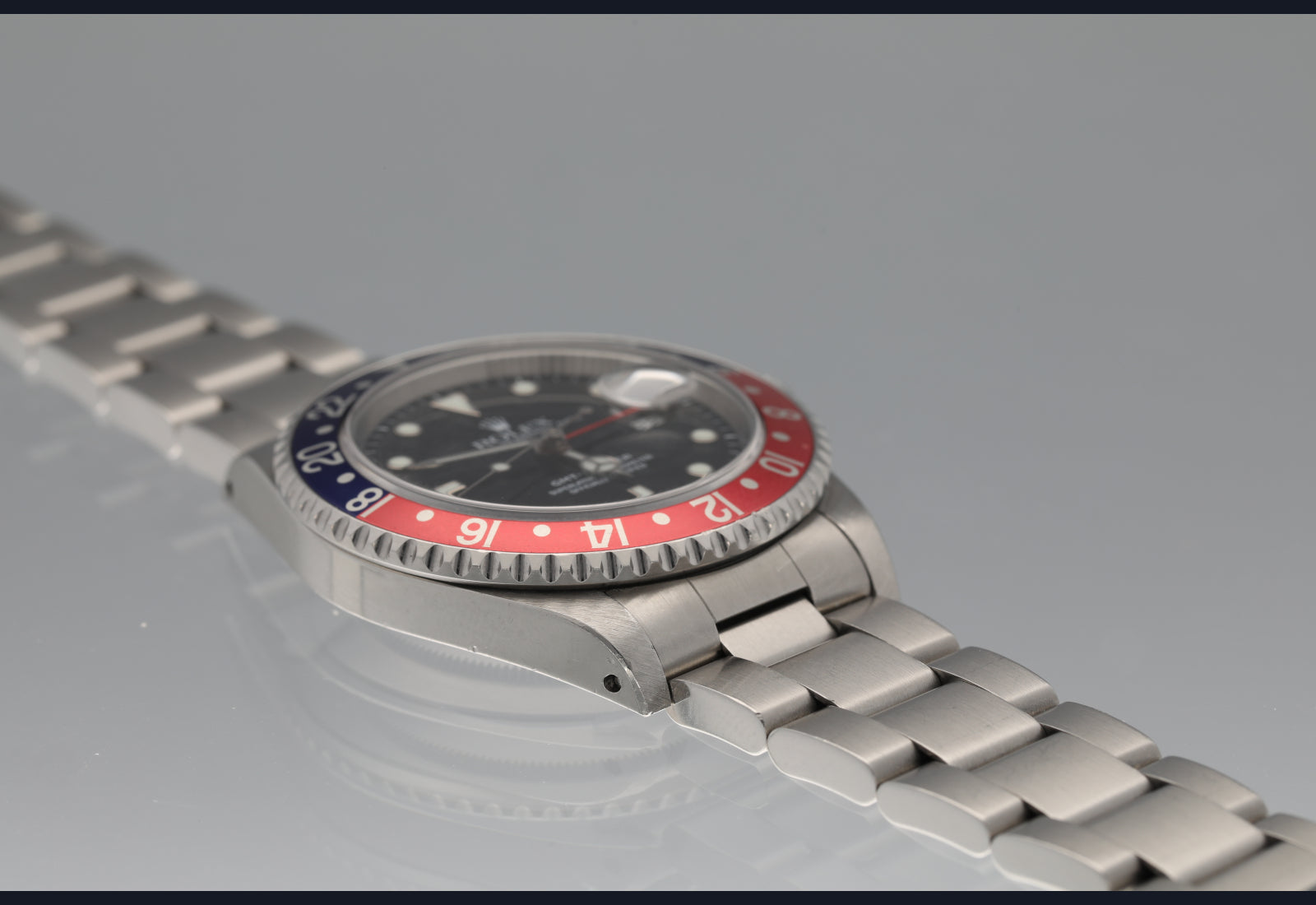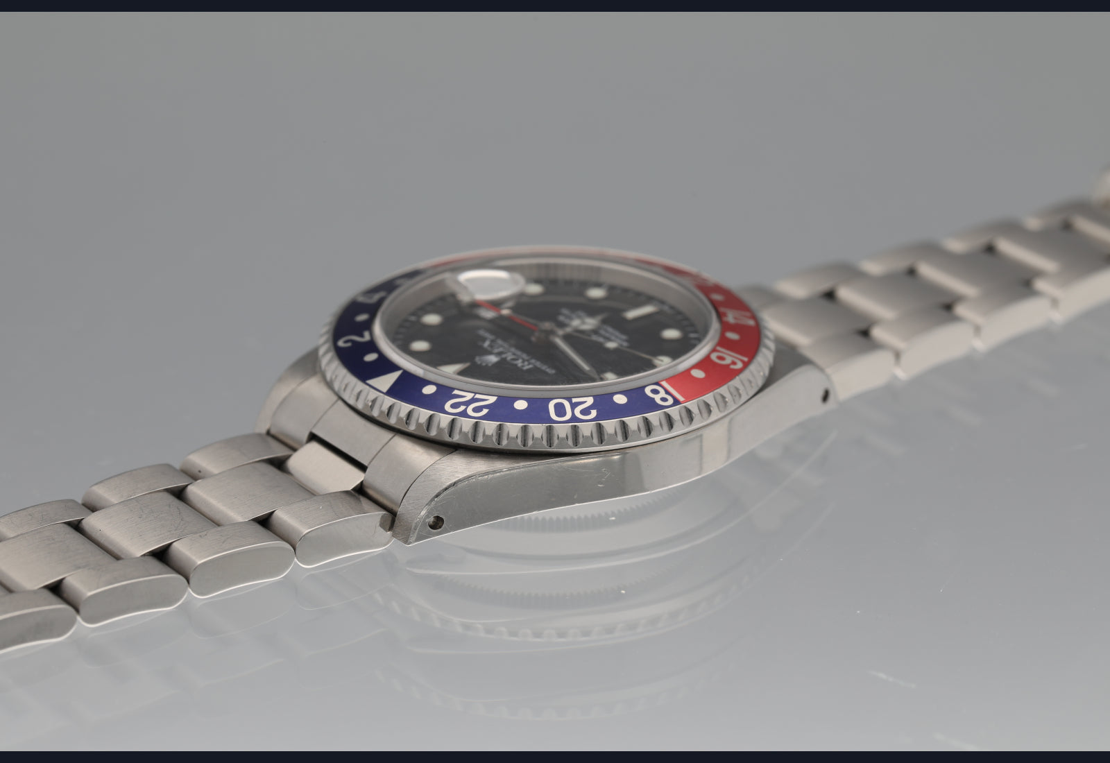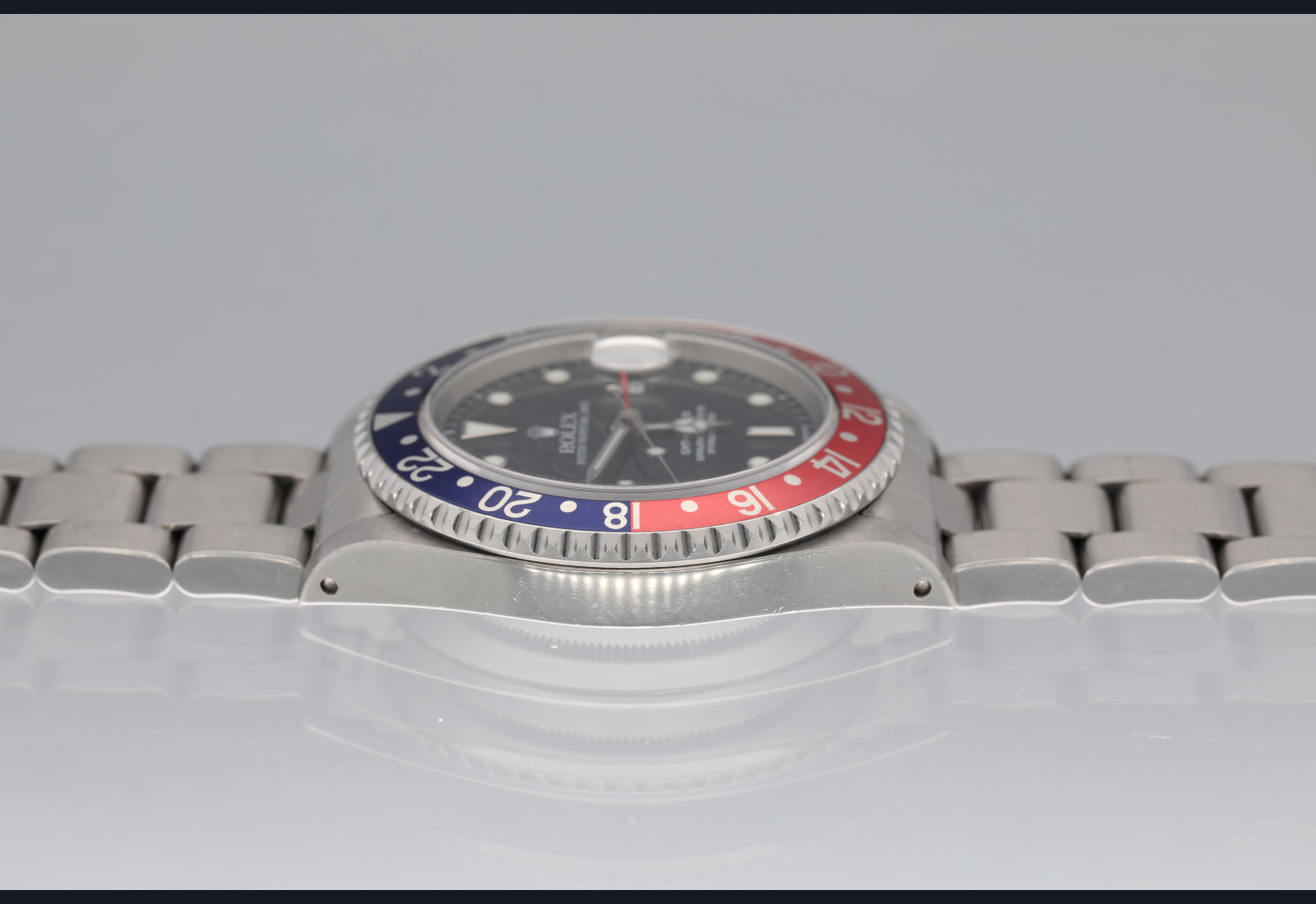 A Sweet Pepsi 16700 from 1998 where the insert has faded to a pink and royal blue. The dial and hands are perfect Case is sharp and unpolished and the right lug has a small ding as pictured. Serial and reference numbers sharp between the lugs. The bezel is sharp and the insert is excellent. The bracelet is original and tight with 11 links. The movement is running as it should and was serviced last eeek. comers with box papers and manuals.