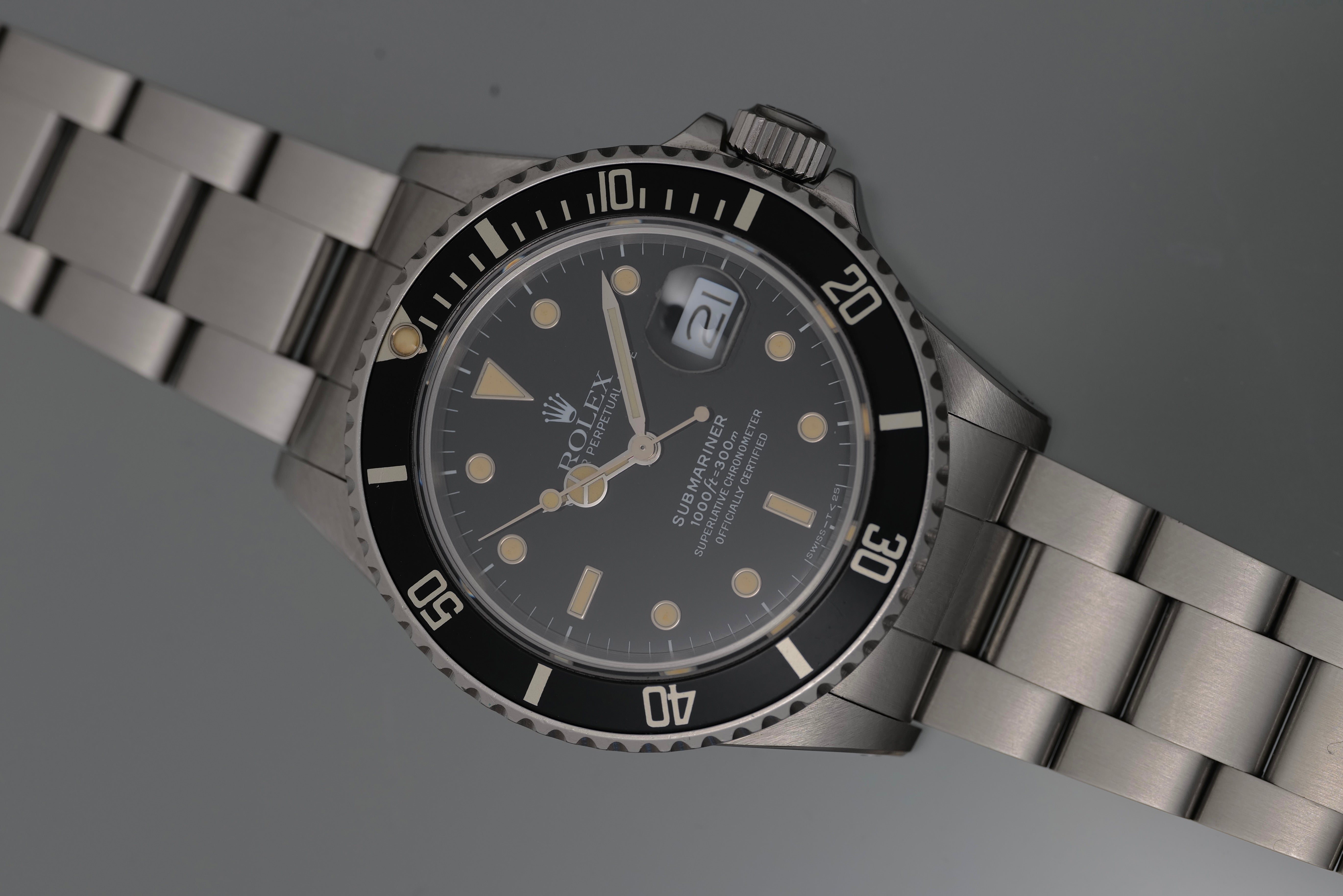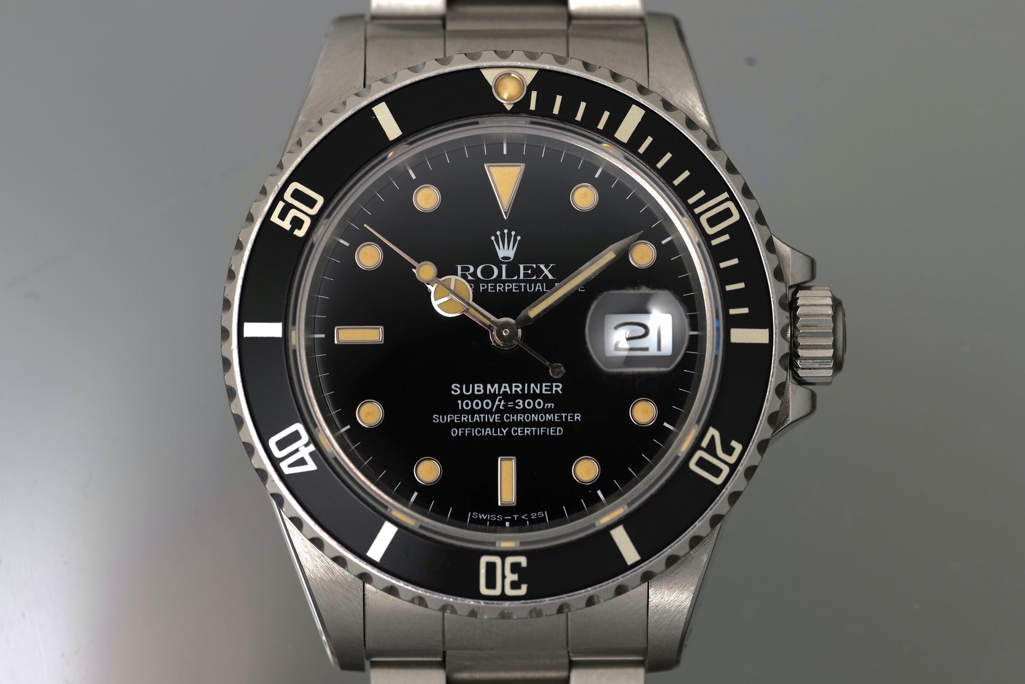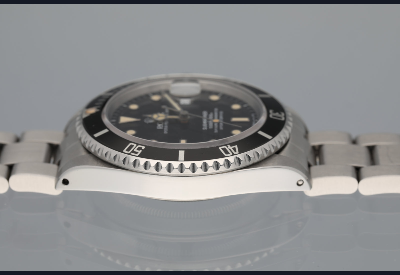 super condition submariner from 1987. The dial and hands are excellent and have developed some very nice heavy cream patina. The case is super sharp and mint with clear numbers. The bezel is sharp and the insert is mint. The bracelet is tight like new. The movement is running perfectly and was serviced in the last 6 months. A very nice overall submariner just ready to be worn.