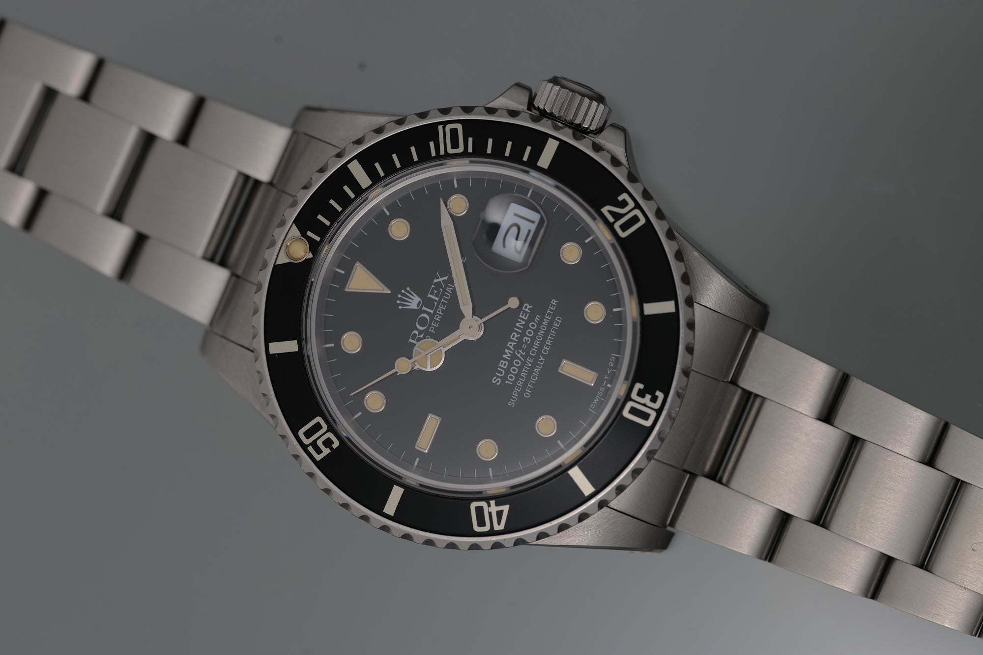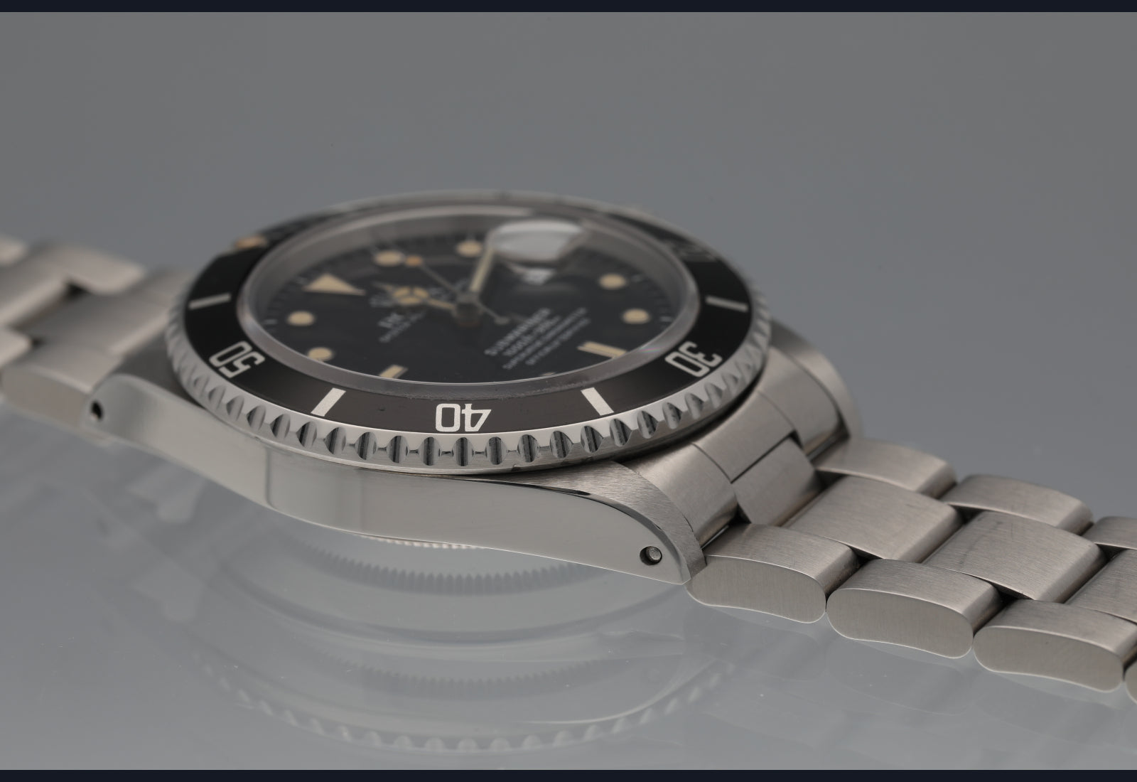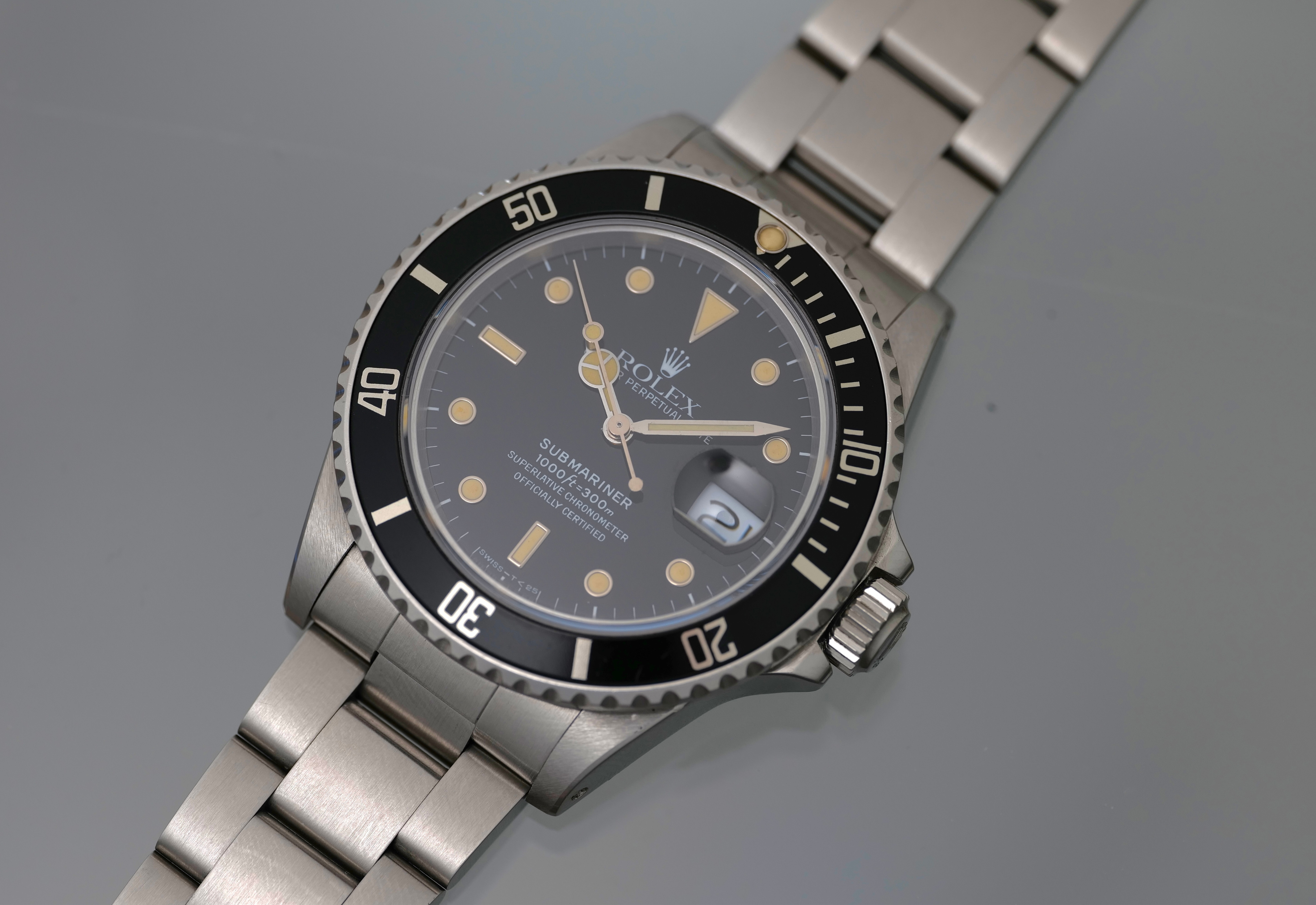 super condition submariner from 1987. The dial and hands are excellent and have developed some very nice heavy cream patina. The case is super sharp and mint with clear numbers. The bezel is sharp and the insert is mint. The bracelet is tight like new. The movement is running perfectly and was serviced in the last 6 months. A very nice overall submariner just ready to be worn.